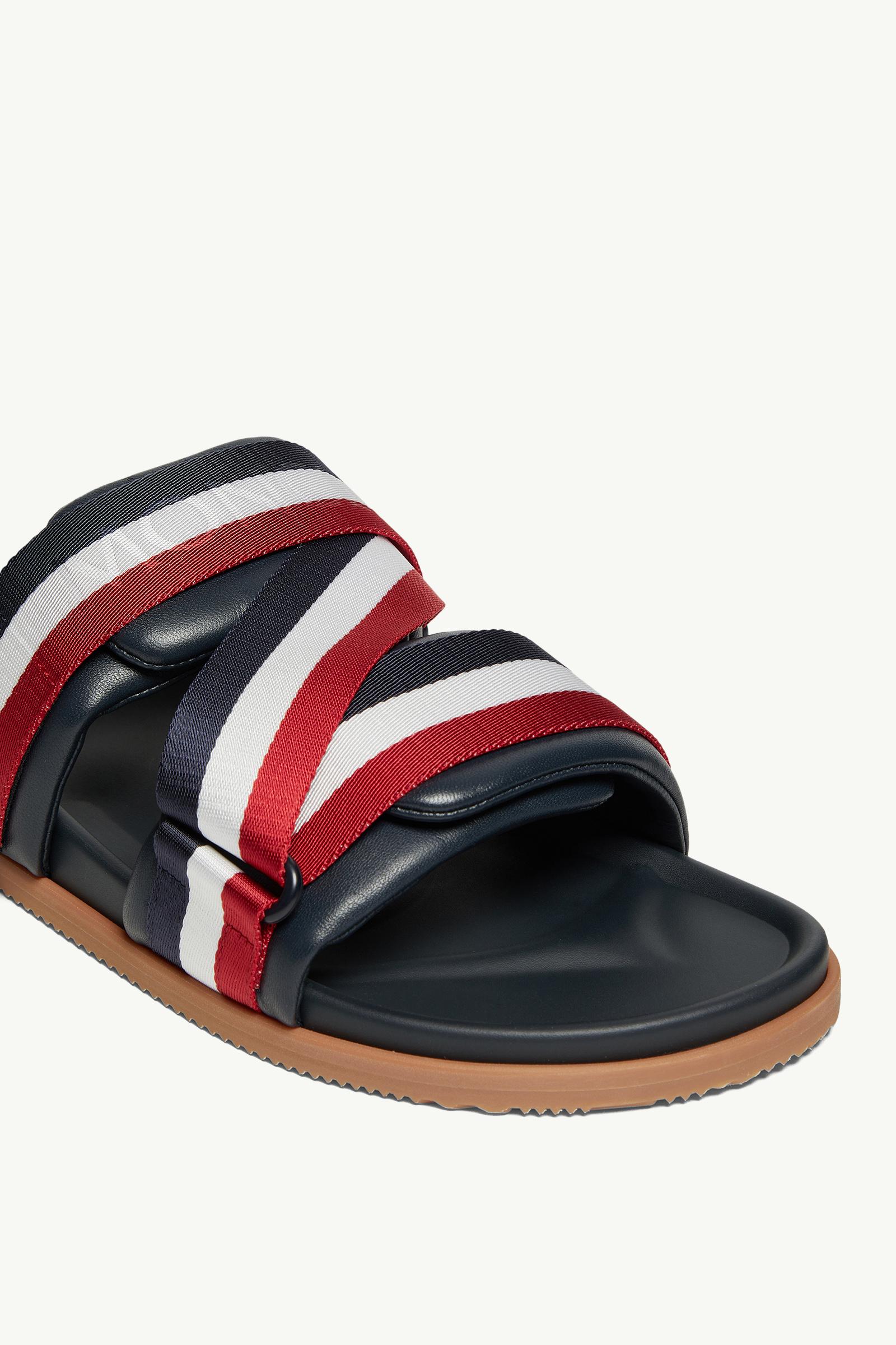 Emblematic of brand DNA, the Mon Summer sandals feature timeless tricolour accents. A go-to piece in balmy weather, the sliders feature a supple nappa leather upper and rubber sole.
